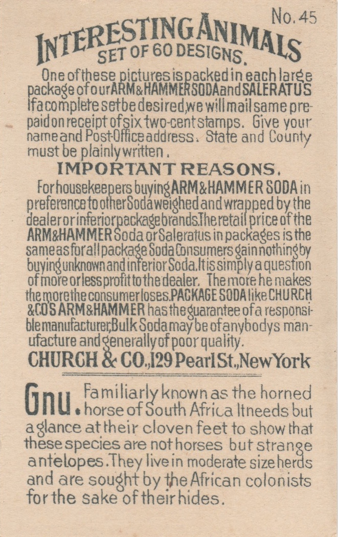There are four sizes of cards: extra large (2 1/2” x 3 3/4”), large (1 7/8” x 3”), narrow (1 3/8” x 2 5/8”), and small (1 1/2” x 2 1/4”). In the Hodge listings, sets with the prefix 'AH' have Arm & Hammer logos; those with the prefix 'DS' have Dwights Soda logos.